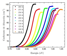 El compuesto ternario Ag2GeSe3 pertenece a la familia de los compuestos I2IVVI3 de derivación catiónica adamantana con empaquetamiento anionico cúbico proveniente de la estructura esfalerita. Se obtuvieron muestras policristalinas sintetizadas por el metodo de transporte en la fase de vapor, cuya pureza de los elementos constituyentes eran de 5N. El semiconductor Ag2GeSe3 se caracterizo por las técnicas de análisis termico diferencial, absorción óptica y difracción de rayos X, cuyos resultados indican que su punto de fusión se encuentra a una temperatura de 794 K, posee una brecha de energia directa de 0.851 eV a presión y temperatura ambiente, a su vez el patrón de difracción muestra la presencia de un 86,5 % de la fase principal Ag2GeSe3 y un 11,5 % de una fase secundaria identificada como GeSe. El refinamiento de los parámetros de celda establece que la fase principal del compuesto Ag2GeSe3 cristaliza en una estructura cuya simetria es monoclinica, con un grupo espacial C2/c (Nº 15), Z = 4, y cuyo valor de los parámetros de la celda unidad son: a = 6,775(8) Å, b = 22,581(3) Å, c = 11,635(5) Å, con un ángulo β = 97,08(2)° y el volumen de la celda unidad V = 1766,48 Å3. El refinamiento de parámetros convergió a las figuras de mérito M(20) = 11,2; F(20) = 21,2 (0,0052; 490); para 490 reflexiones independientes.Descargas